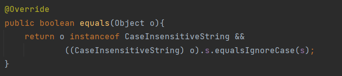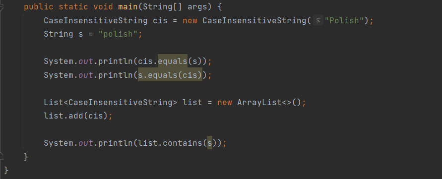 이 문제를 해결하려면 CaseInsensitiveString의 equals를 String과도 연동하겠다는 생각은 버리고 아래처럼 간단하게 오버라이딩 하자.