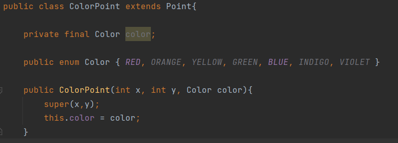 x, y의 좌표를 가진 Point를 상속받아 color를 추가하는 클래스를 만들어보자.