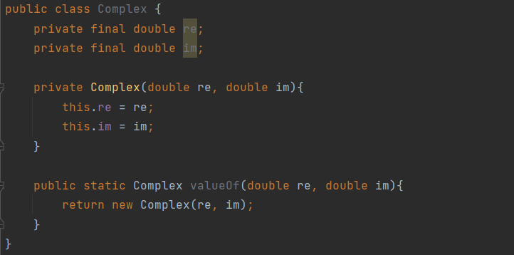 해당 메서드는 인스턴스 자신은 수정하지 않고 새로운 Complex 인스턴스를 만들어 반환한다.
